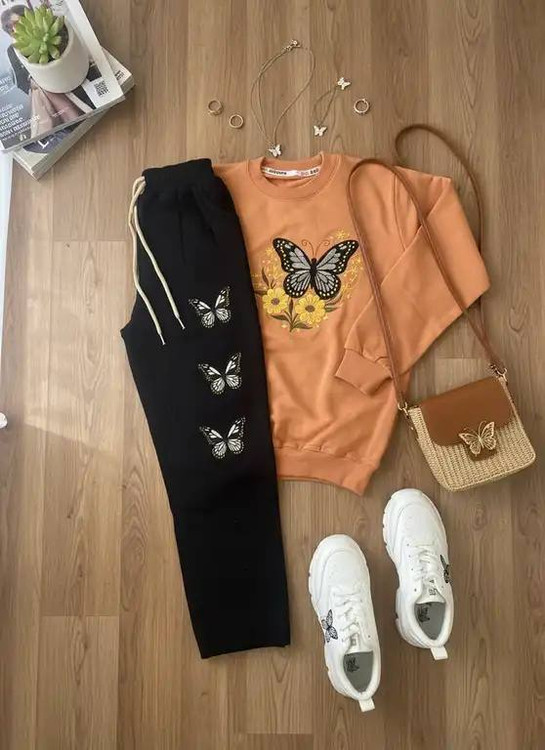 🦋 ست بلوز و شلوار پروانهای – مناسب ۱۰ تا ۱۲ سال